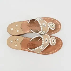 Jack Rogers Georgica Thong Sandals Womens Size 6 Tan White Leather Whipstitch