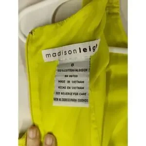 I bought this for my daughter and it didn't fit her right. So my loss is your gain. It is a Madison Leigh yellowish green colored dress. It is a womens size 8 and is sleeveless.