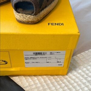 Fendi slingback espadrilles with a stylish peep-toe design and Zucca jacquard print. Elastic on straps has worn down but still great condition otherwise