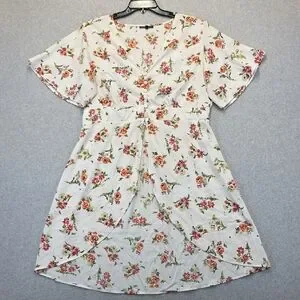 New Glory Plus Size Floral Tunic Top 2X White Button Front Boho
