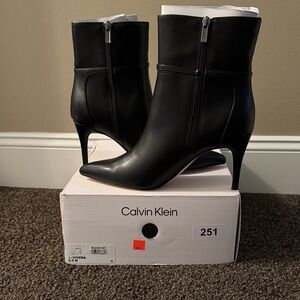 Elegant black heeled boots by Calvin Klein. Perfect for stylish outings. brand new size 9 1/2 black.