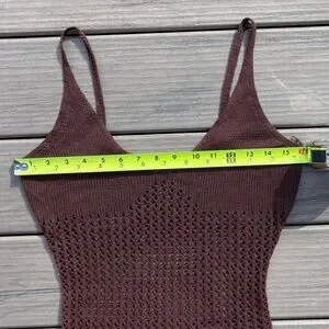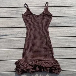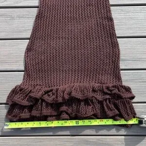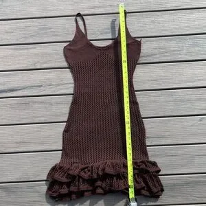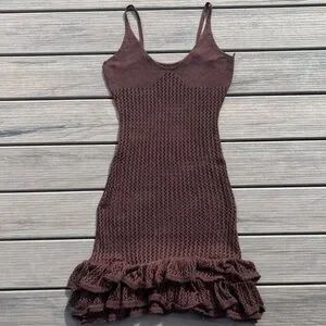 Brown Fishnet; Slip On; Swim Cover Dress; Spaghetti Straps; Ruffled Bottom; L
