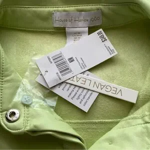 NWT House of Harlow 1960 Lime Green Vegan Leather Midi Shirt Dress Size Medium