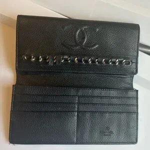 vintage chanel wallet, chanel caviar wallet, chanel cc wallet, vintage designer wallet, chanel trifold wallet, black chanel wallet, chanel caviar leather wallet, luxury designer wallet, chanel cc logo wallet, vintage luxury accessories, classic chanel wallet, collectible designer wallet, chanel vintage wallet women