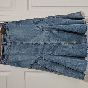 ✨ XOXO Y2K Denim Flare Panel Skirt Raw Hem Size 1/2