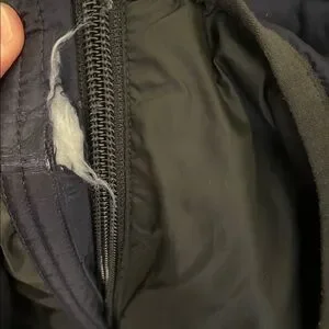 Used condition. There’s general wear but 2 main issues I have pictured: there’s a tear on the inside liner near the zipper from the zipper getting stuck and tugging on the material, and one of the zip front pockets is off the zipper track and won’t zip up or down.