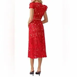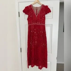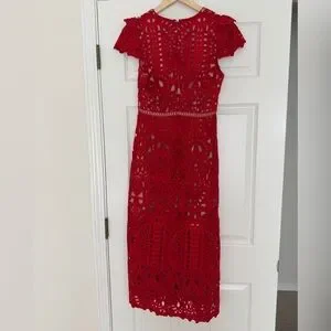 Adelyn Rae Red Lace Midi Dress, size S, NWT