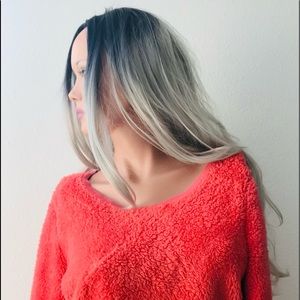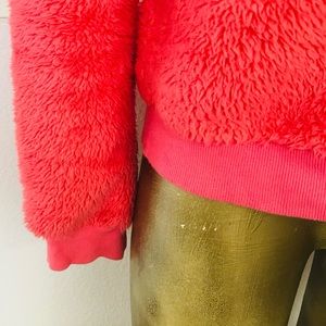 This is the coziest ever teddy bear-style sweater size medium. Tags have been removed, but this is the thickest softest fleece both inside and out. Item is machine-washable. Color is a peachy orange. Approximate measurements are 37 inches at bust, 36 inches at waist, 23 inches in length, 24 inches in sleeve length, 17 1/2 inches shoulder-to-shoulder. Item sold in gently-used condition.