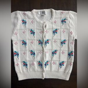 Vintage Floral Embroidered Button Down Cardigan Sweater Small Cottagecore Dainty