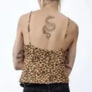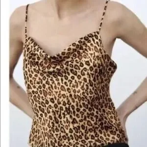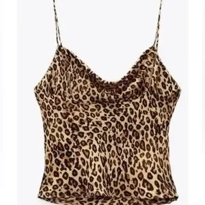 Zara Cami Crop Leopard Animal Print Chain Straps Satin Cami Blouse Tank Top