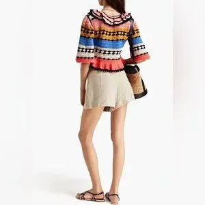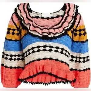 NWT ZIMMERMANN Ruffled crocheted cotton sweater Multicolor US SZ 2P