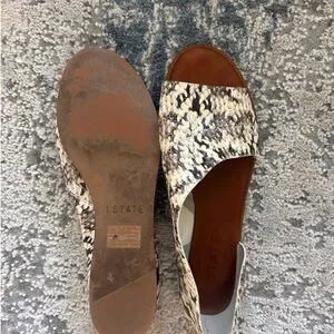 Chic open-toe sandals with a snakeskin pattern. Comfortable flat sole. Perfect for all spring and summer long.
