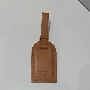 Sophisticated leather luggage tag by Louis Vuitton. Ideal for travel elegance.