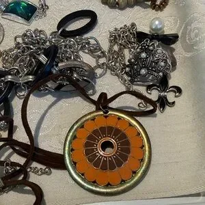 Elegant Orange and Gold Pendant Necklace Bundle Craft Reseller #166