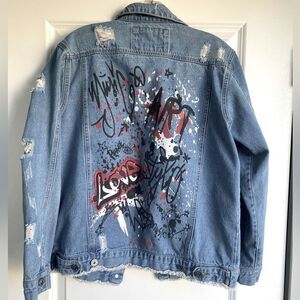 The Style Between Us -Distressed graphic Jean Denim Jacket Punk Y2K fashion