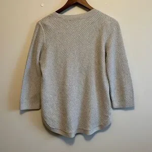 Elevate your wardrobe with this stylish metallic glitter knitted knit sweater top from Tommy Hilfiger with 3/4 sleeves. Perfect for any occasion, this top combines comfort and elegance effortlessly. Size L / large. Pit to pit: 18.5” Length: 24.5” Sleeve: 20.5”