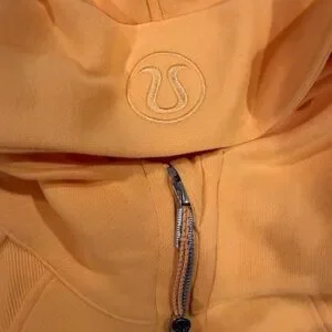 M/L Bright yellow hoodie with front pockets and half-zip design. Features Lululemon logo on the hood. Missing tear away tag. Emergency hair-tie zip attached.