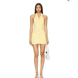 NEW SNDYS x Revolve Button Down mini Yellow Halter Dress