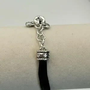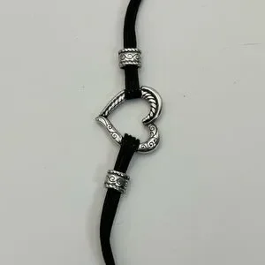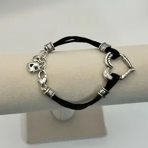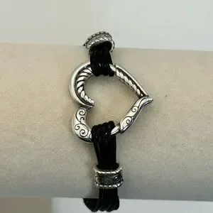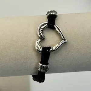 Brighton Heritage Heart Bracelet 8" Silver Plated Black Corded Strap J32460