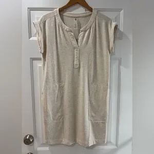Lou & Grey Signaturesoft Split Neck Pocket Dress Women’s Sz M in Lt Oak Heather