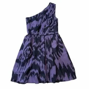 Shoshanna One Shoulder Black and Purple Silk Cocktail Dress