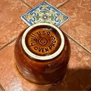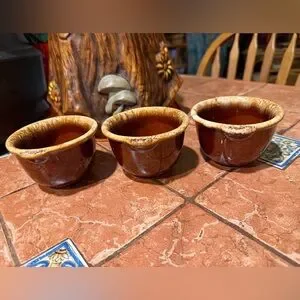 HULL Pottery Brown Drip Glaze Made in USA ~Set of 3~Dessert Bowls / Custard Cups / Ramekins W/ Tab Handles Farmhouse Country Cottage Kitchen