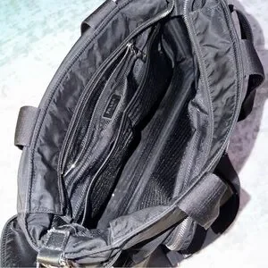 Good condition. All zipper closures work perfectly. One small flaw/rip where shoulder strap buckles and it does not affect the buckle whatsoever.