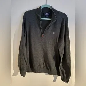 Classic Vineyard Vines quarter zip-up sweater with a cozy fit. Men’s size Large in Charcoal. 100% cotton. Features a subtle logo detail. Ideal for layering. Smoke free pet free home.