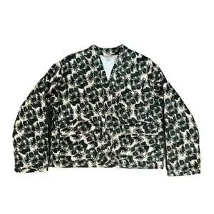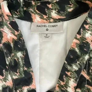 Rachel Comey for Target animal print quilted jacket in women’s size Medium. Features a bold colorblock design in black, white, green, and peach with a modern animal print pattern.