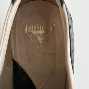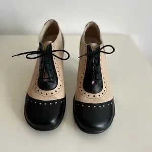 John Fluevog black and cream colored lace up Brogue Heels. Size 9. Brand new condition, one streak of paint inside the shoe as pictured.