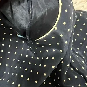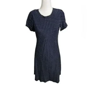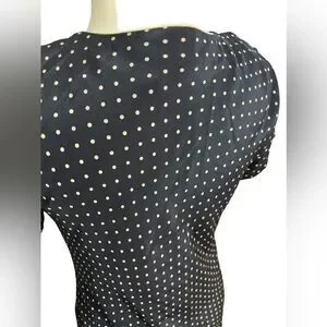 Vintage 100% silk size 6 or medium …. In great condition great dress !!! Has cream polkadots on blue short sleeve dress