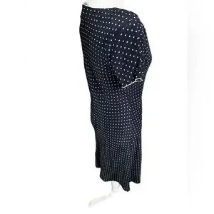 90s Vision Apparel Silk Dot Dress 6 medium blue and cream midi