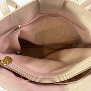 Brass-tone exterior hardware, 1 back slip pocket, 1 interior cell phone pocket, 1 zip compartment & 1 back wall zip pocket