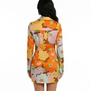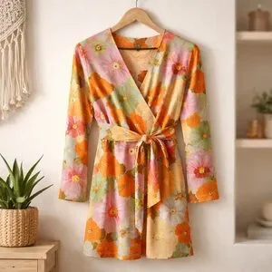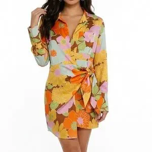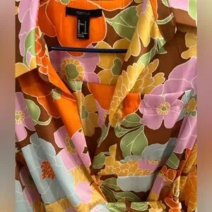 🛍️ Forever 21 orange floral wrap, long sleeve midi dress Size small