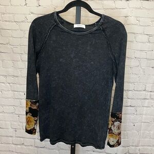 The layering life is the best life. This vintage wash long sleeve top features floral and button detailing on the wrist, making it the ideal piece to layer under jackets and cardigans if you just roll the sleeves to let it show!