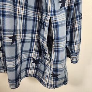 Joan Rivers Womens Celestial Plaid Flannel Shirt XL Star Print Chambray A464813