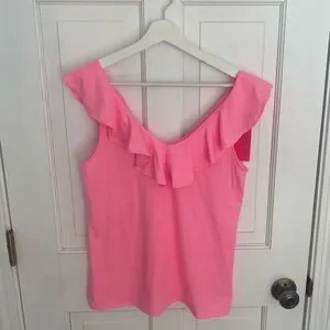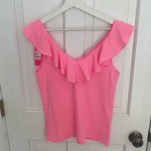 NWT - Lilly Pulitzer Alessa Top, Pelican Pink, size Small. The Alessa Ruffle Tank Top from Lilly Pulitzer is a bra-friendly tank that pairs back easily to any outfit. Its front and back ruffle v-neckline gives an elevated feel to a basic silhouette. In Pelican Pink, this vibrant piece is perfect to match with fun patterns or add color to your wardrobe.