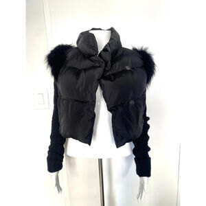 BCBG MaxAzria S Cropped Down Fur Knit Puffer Jacket Black Long Sleeve Women's