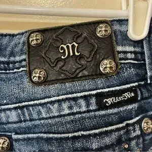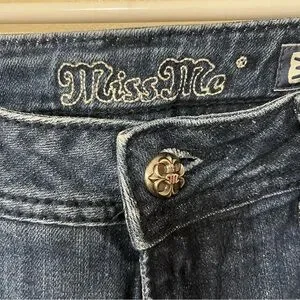 Miss Me Dark Blue Boot Cut Jeans with rhinestone embellishment.