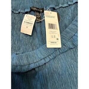 EILEEN FISHER 2X Woven Plisse Wide Leg Ankle Pant Blue Beachy Vacay Comfy Light