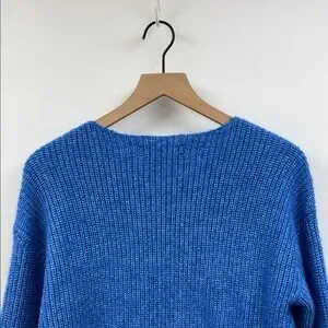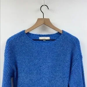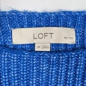 Ann Taylor LOFT Chunky Knit Boatneck Relaxed Pullover Sweater Blue Medium Petite