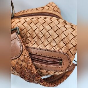 Donna Dixon Vintage Woven Hobo Tan Leather Shoulder Bag