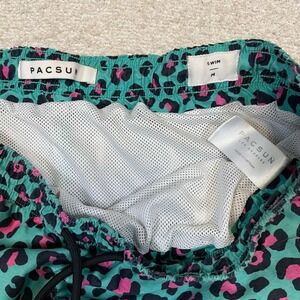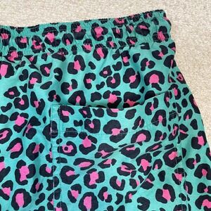 PacSun Mens Size M Green and Pink Leopard Print Swim Trunks Mesh Lined Shorts
