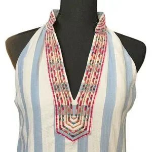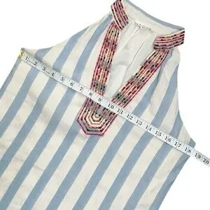 Cute, tank style embroidered dress. Perfect for casual summer days. Fully lined. No pockets. It’s 100% cotton but feels a bit like linen. Measurements are pictured. No defects.