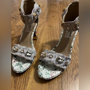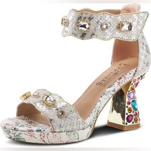 L'Artiste Jewel Strap Sandal Crystals Elegant Multicolor Embellished Heels 39/9
