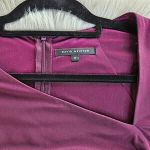 David Meister Size 6 Plum Cocktail Dress Ruched Midi Dress Beaded Elegant Party