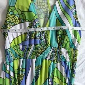Pucci trina turk racerback maxi dress removable pads abstract print green blue resort wear vacation dress summer dress cruise wear beach dinner outfit poolside outfit boho chic coastal chic flowy lightweight travel dress spring break outfits girls trip outfit wedding guest dress retro vintage vibes