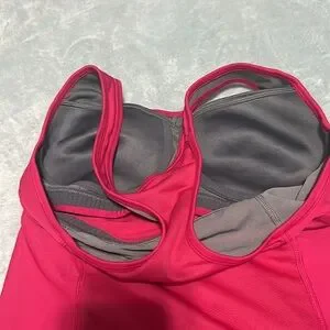 Nike exercise top with bra underneath.