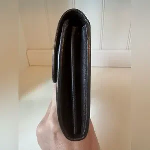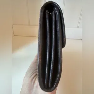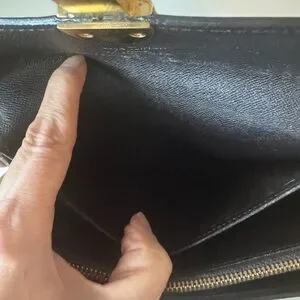 Wallet is pre owned condition. Shows wear typical to the age of wallet. Exterior fading, exterior hardware shows scratches and tarnishing, minimal corner rubbings, hardware is working condition. Interior has owner initials, shows scratches and wear, clean pockets, minimal coin residue