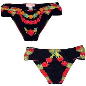 mara Hoffman garland bikini bottoms women's size medium cheeky fit black, pink multi color